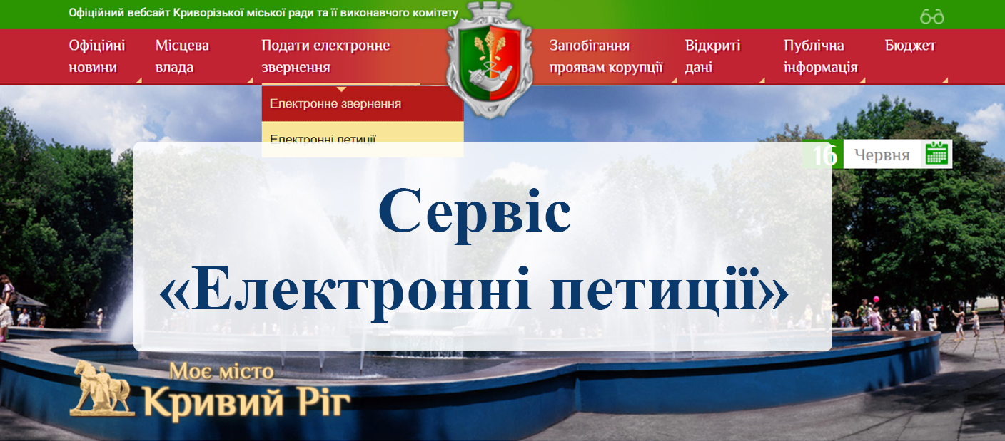 Електронний сервіс створений відповідно до чинного законодавства та надає можливості мешканцям міста розміщувати петиції на офіційному вебсайті Криворізької міської ради та її виконавчого комітету, голосувати за їх підтримку, ознайомлюватися з петиціями.